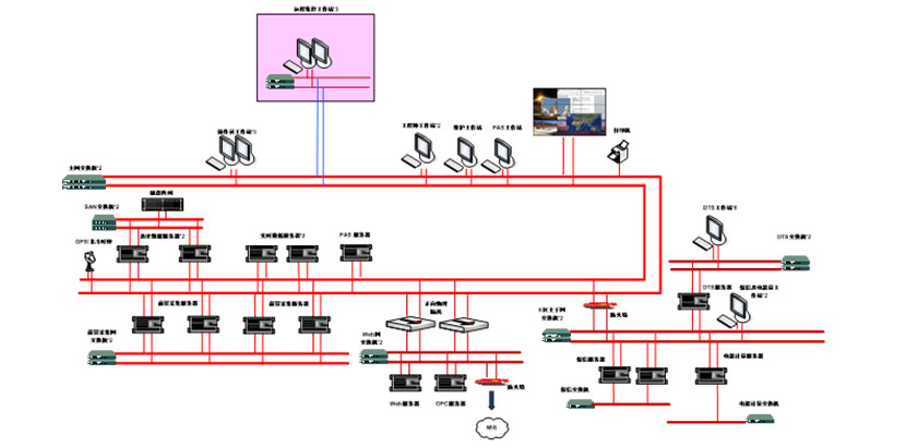 全厂电气综合自动化系统通信网采用赫斯曼交换机,以环网和放射网混合组网方式集成了东方电子220kV站子站,第三方厂家三个区域(炼油区、化工区、动力区)110kV电压等级以下变电站子站、五防系统。