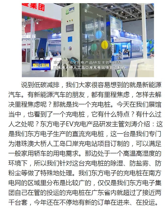 烟台新闻:东方电子新一代智能充电桩参展2021双碳及能源装备展会