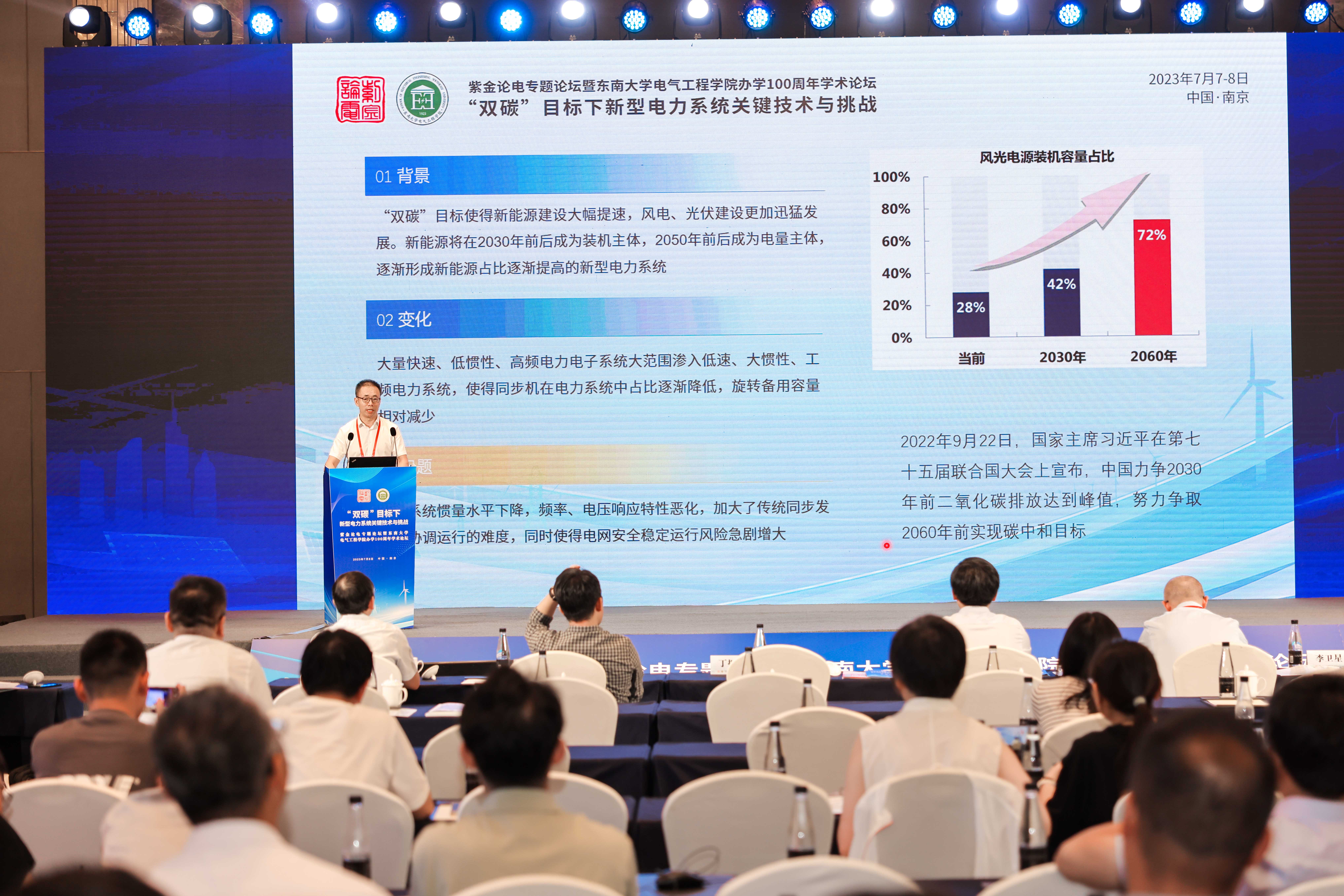 2023年7月8日,由中国电机工程学会电力系统自动化专业委员会指导,国网电力科学研究院有限公司期刊中心和东南大学电气工程学院联合主办的“紫金论电专题论坛暨东南大学电气工程学院办学100周年学术论坛——‘双碳’目标下新型电力系统关键技术与挑战”在江苏南京召开。樱花私人影视剧免费董事长丁振华受邀参加紫金论电专题论坛并作报告。