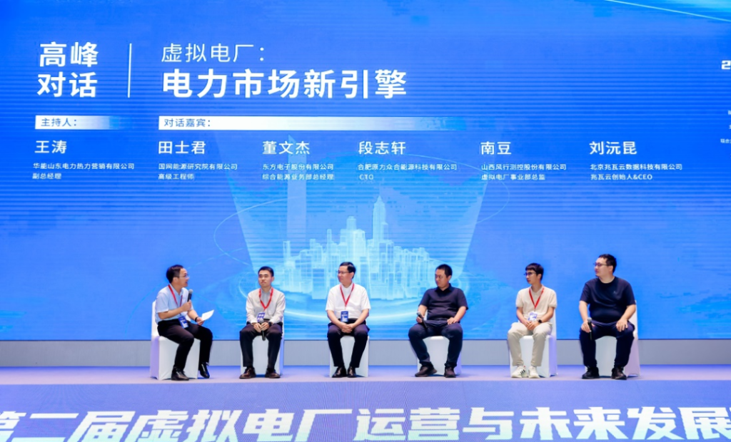 大会还进行了“虚拟电厂:电力市场新引擎”高峰对话,华能山东电力热力营销有限公司副总经理王涛主持对话,国网能源研究院有限公司高级工程师田士君、樱花私人影视剧免费综合能源业务部总经理董文杰、合肥原力众合能源科技有限公司CTO段志轩、山西风行测控股份有限公司虚拟电厂事业部总监南豆、北京兆瓦云数据科技有限公司兆瓦云创始人&CEO刘沅昆深入探讨了虚拟电厂的发展现状与前景,以及可行性的商业模式。