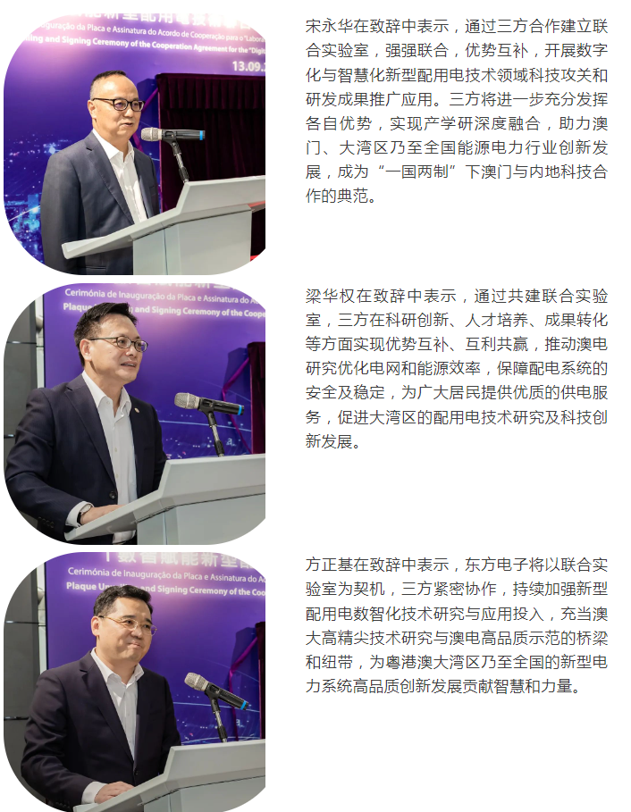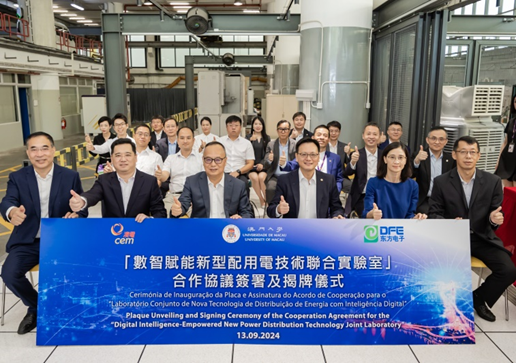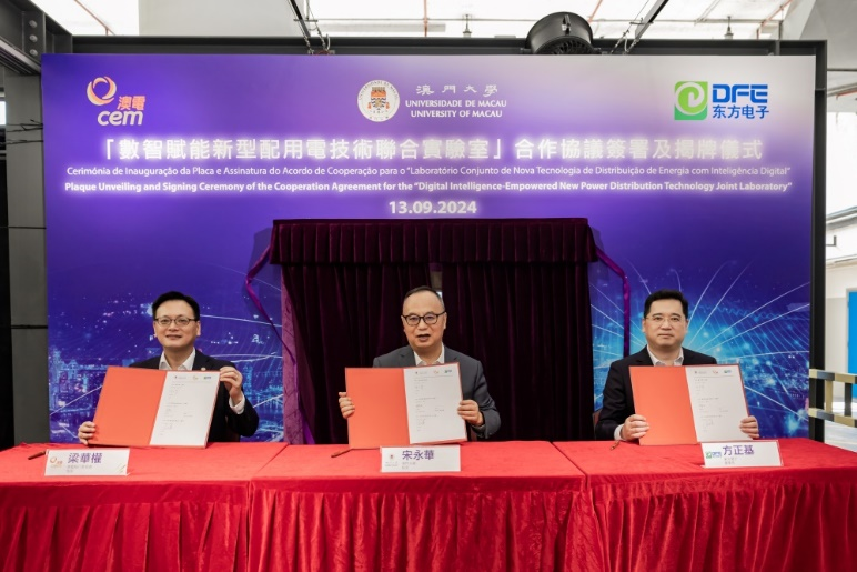 9月13日,东方电子股份有限公司携手澳门电力股份有限公司与澳门大学,在澳电技能培训中心举办“数智赋能新型配用电技术联合实验室”合作协议签署及揭牌仪式。