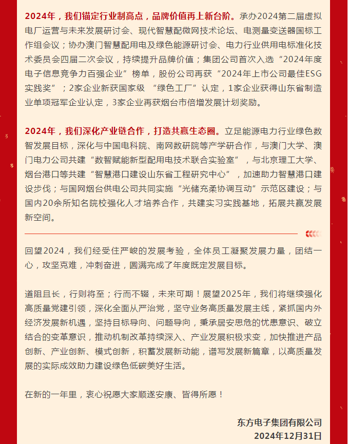 东方电子集团2025年元旦贺词|稳中奋进谋发展 守正创新谱新篇