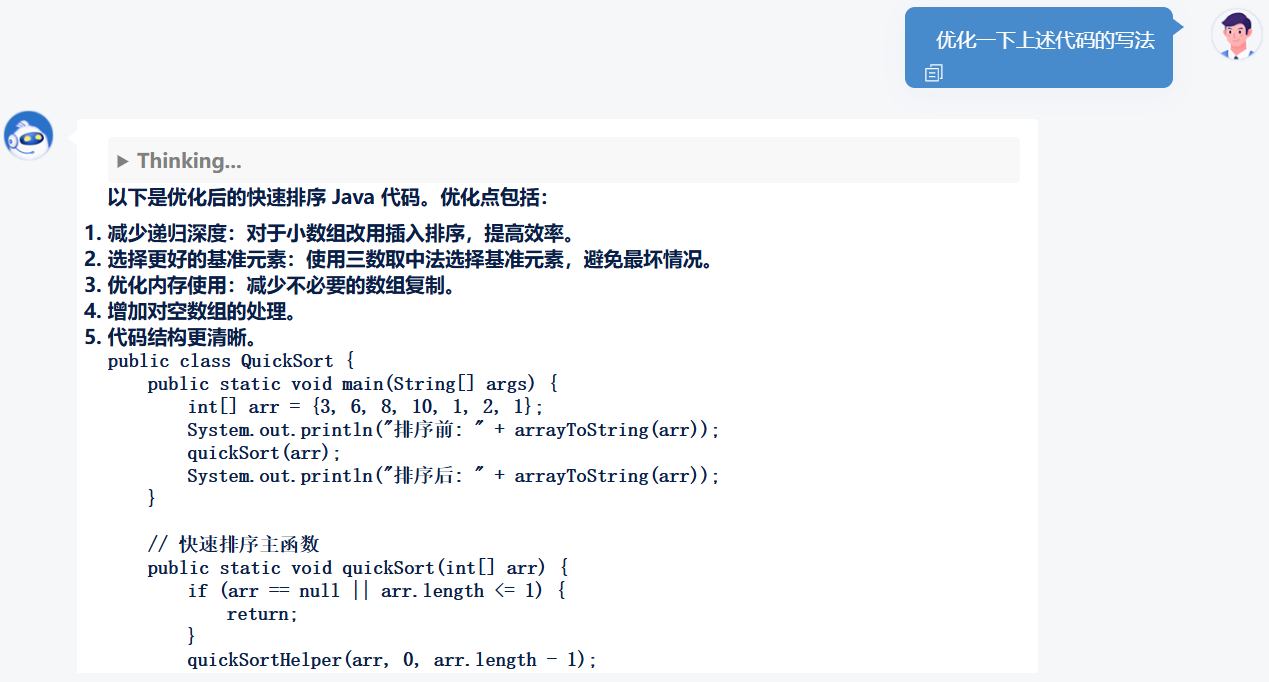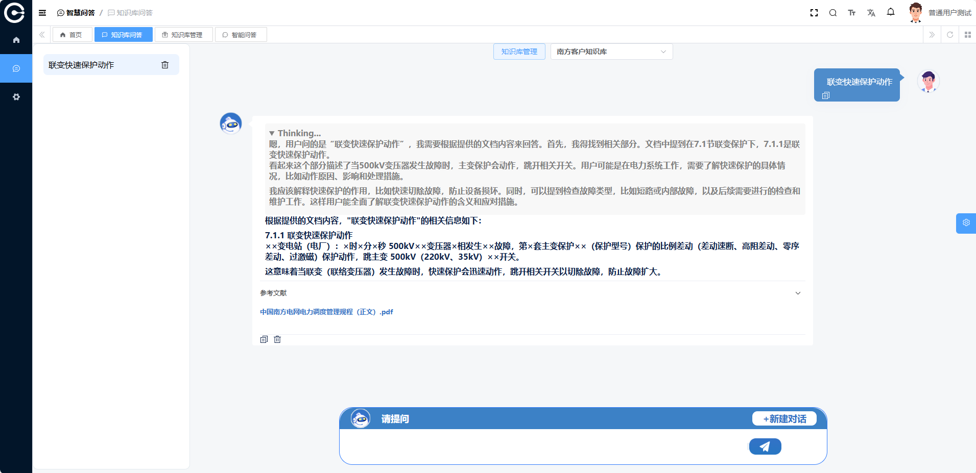 落地应用,实效见证 案例 1:东方慧码——智能代码管理,开启高效开发新时代 东方慧码融合人工智能与自然语言处理技术,构建智能代码辅助系统,提升开发效率与代码质量。 ☞ 核心功能:智能代码辅助 ●支持智能上下文感知,精准解析项目技术栈,适配不同开发需求。 ●提供代码优化建议,精准定位性能瓶颈,减少冗余代码,提升执行效率。 ●实现代码翻译功能,支持多语言转换,降低跨语言迁移成本。 ●根据自然语言描述生成高质量代码,提供智能联想与API推荐,提升开发效率。 ●自动生成简洁注释,支持多语言,同步生成技术文档与依赖关系图。 ☞ 技术优势 精准理解代码语义,支持多语言优化与翻译,减少跨语言开发成本。提供个性化建议和安全保障,提升开发效率。 ▲智能解析并快速生成代码 ▲优化代码内容和结构 案例 2:东方智库——电力智能知识管理,高效赋能电力行业新时代 电力行业面临数据分散、检索低效、专业性强等问题。东方知问融合知识库与大模型技术,构建多领域知识体系,提升知识查询效率与准确性。 ☞ 核心功能:智能问答与知识赋能 系统支持多领域知识库构建,精准语义检索,生成专业、可溯源回答。多步推理识别设备异常关联,反馈优化提升精准度。 ☞ 技术优势 系统具备强大的智能检索和推理能力,能够根据电力行业的特殊需求提供定制化文件解析和查询服务。支持跨领域知识融合,帮助用户快速识别设备异常并做出准确决策。 ▲自动解析并快速构建结构化知识库,实现高效、便捷的知识管理 ▲知识问答精准专业,知识溯源清晰准确 案例 3:智能巡视系统秒级调阅——电力智能巡视,秒级调阅开启高效运维新时代 电力设备运维中,传统人工调阅数据效率低、操作复杂。东方智调赋能智能巡视系统,通过优化技术架构,实现秒级调阅,提升效率。 ☞ 核心功能:秒级调阅与交互优化 系统支持秒级调阅,整合分散数据,精准识别用户意图,自动匹配工具。支持语音或文字操作,实时提示反馈,降低操作难度。 ☞ 技术优势 系统具备秒级响应能力,高可用性和稳定性,支持功能灵活扩展,满足不同场景需求。 ▲简单的文字输入快速精准调阅画面