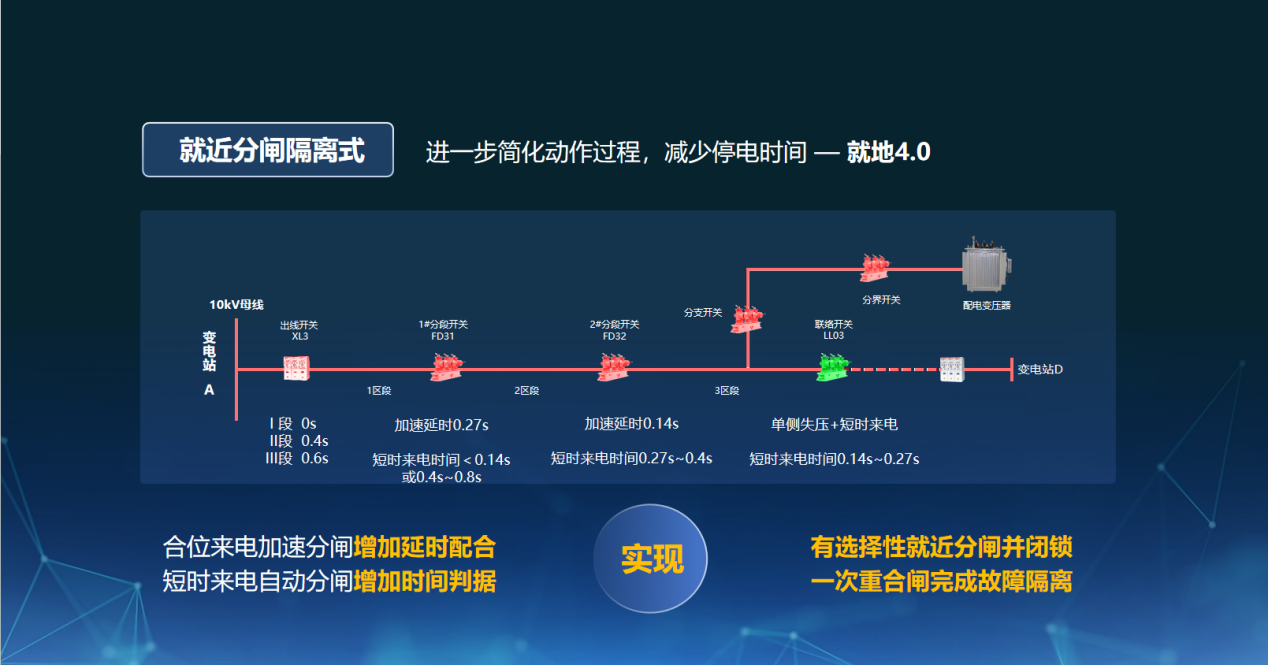 “自适应智能型馈线自动化”故障处置方案,遵循“可靠供电”与“快速处置”兼顾的原则,对就地型馈线自动化故障处置策略进行深度优化,依靠开关就地配合,就能迅速完成故障处置与自愈恢复。设备响应速度从30秒缩短至2秒,大幅提升了配网线路的供电可靠性。
