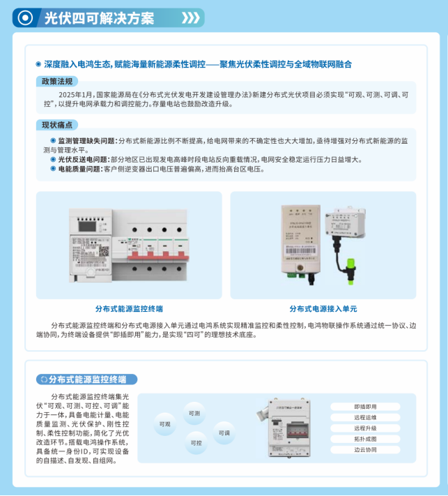 新能源规模化接入使配电网波动性加剧,传统调控手段响应滞后、缺乏统一协同平台的问题愈发明显。东方电子依托电鸿物联操作系统,构建新能源低压透明化解决方案,通过全域感知、多资源协同优化等技术提升配电网的智能化水平,增强其对新能源的柔性调控能力。