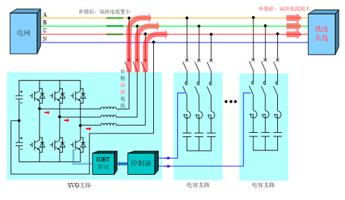 • 具有补偿谐波功能,有效滤除负载3、5、7、11等特征次谐波,在补偿三相不平衡、补偿无功功率的同时对特征次谐波有良好的滤除作用。