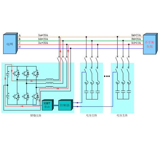 • 与固定电容器补偿联动,采用SVG的控制器,统一控制电容器的投切,既能减少体积又方便协调控制。