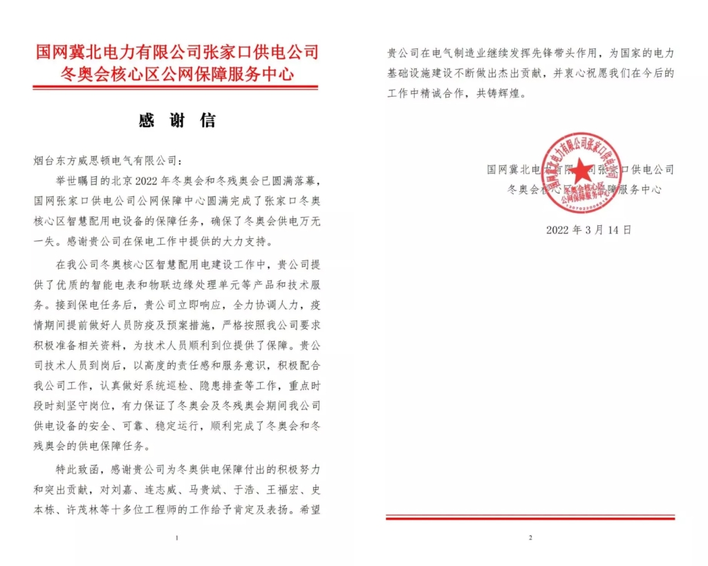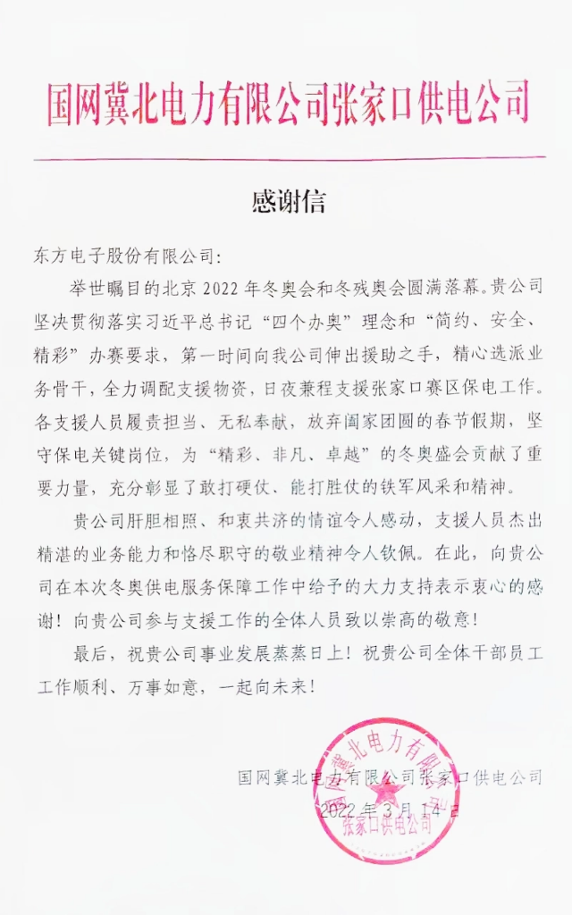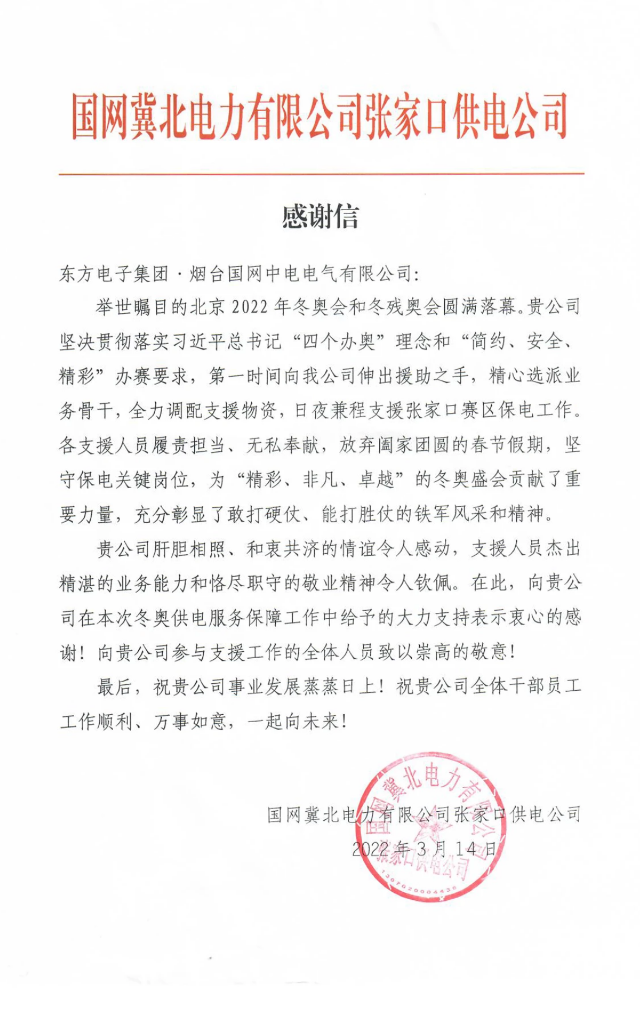 近日,举世瞩目的北京2022年冬奥会和冬残奥会圆满落下帷幕。在冬奥及两会期间保电筹备和赛时保障过程中,东方电子集团有限公司(以下简称“集团公司”)圆满完成保电任务,获得了一致好评。